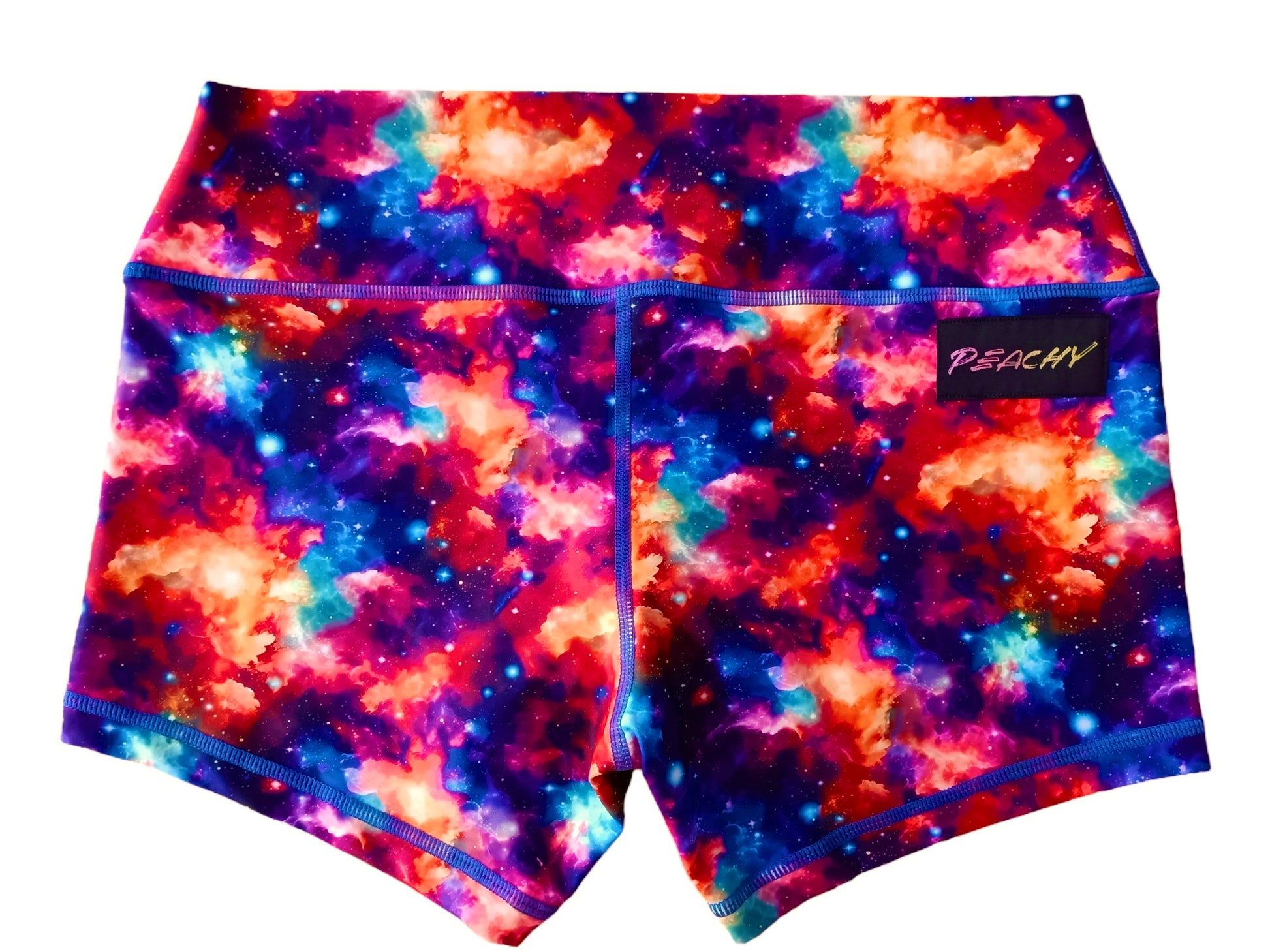 Alli I am in LOVE with these shorts. Super fun pattern. So colorful. Fit is perfect as always. Peachy never lets me down. These shorts are short enough not to get in the way. Keeping me cool and ready for all of my workouts. I love wearing such bright fun patterns.