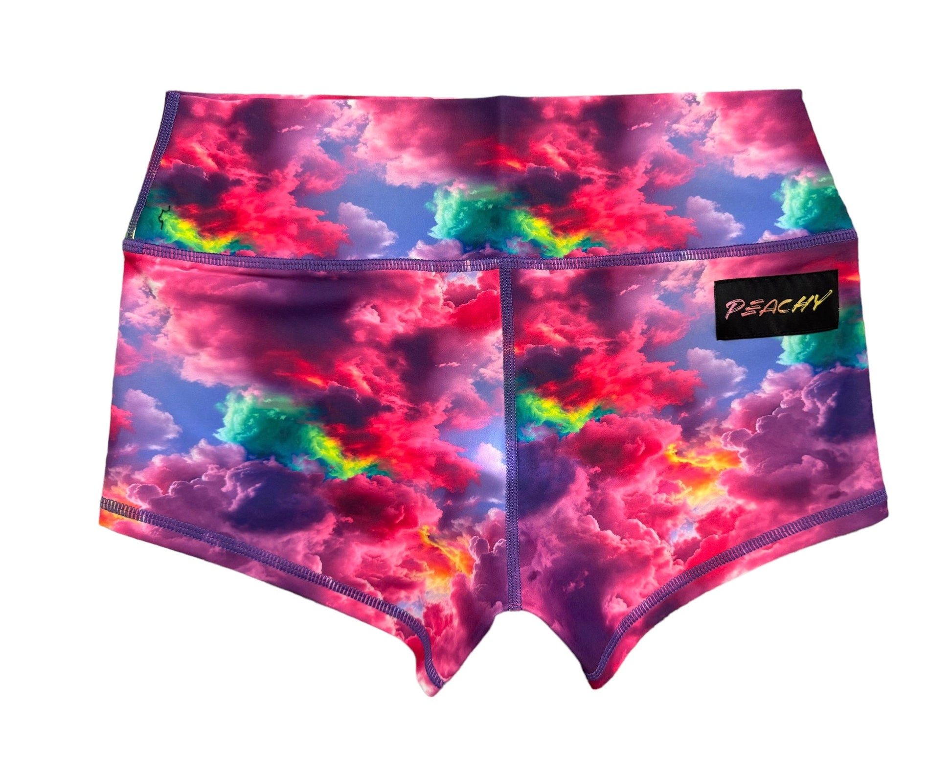 Alli I am in LOVE with these shorts. Super fun pattern. So colorful. Fit is perfect as always. Peachy never lets me down. These shorts are short enough not to get in the way. Keeping me cool and ready for all of my workouts. I love wearing such bright fun patterns.