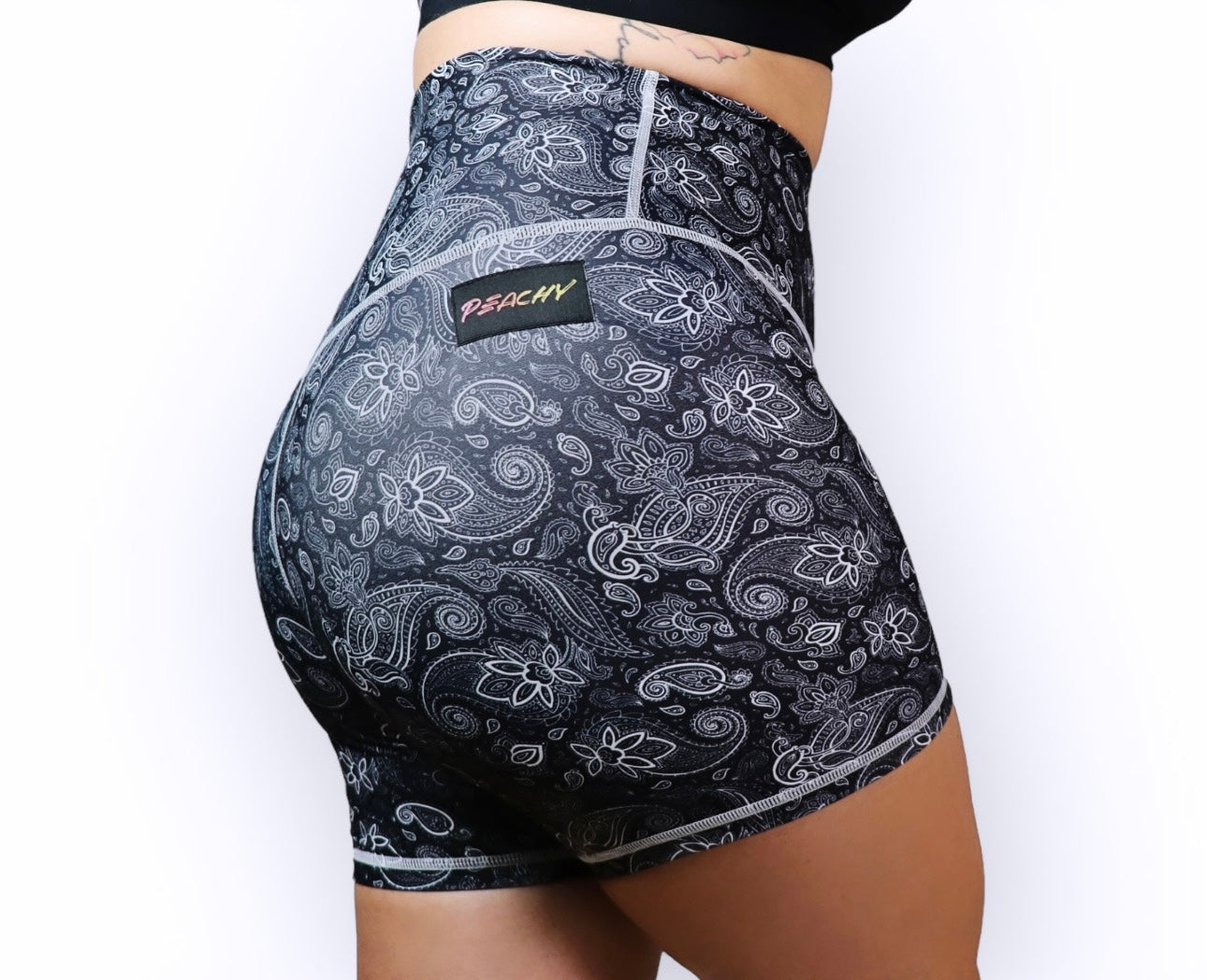 Alli I am in LOVE with these shorts. Super fun pattern. So colorful. Fit is perfect as always. Peachy never lets me down. These shorts are short enough not to get in the way. Keeping me cool and ready for all of my workouts. I love wearing such bright fun patterns.